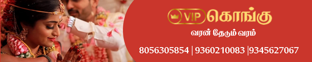 வி.ஐ.பி. கொங்கு வரன் தேடும் வரம் திருமண தகவல் மையம், ஜாதக பதிவுகள் மற்றும் பரிவர்த்தனைகள் அனைத்தும் முற்றிலும் ஆன்லைன் மூலமாக நடைபெறுகிறது. ஜாதக பிழைகள் மற்றும் தவறுதலாக பதியப்பட்ட ஜாதக தகவலுக்கும் அஜய் கொங்கு திருமண தகவல் மையம் நிறுவனத்திற்கும், நிறுவனருக்கும் பொறுப்பேற்க முடியாது என தாழ்மையுடன் தெரியப்படுத்தி கொள்கிறோம். தங்களது பதிவுகள் சரி செய்ய அல்லது தவறுதலாக பதியப்பட்ட ஜாதகங்களை நீக்க எங்களது அலுவக வாட்ஸாப்ப் எண் அல்லது மின்னஞ்சல் முகவரிக்கு தெரியப்படுத்தினால் 30 நாள் இடைவெளியில் உறுதி செய்யப்பட்ட பின் நீக்கம் செய்து தரப்படும். அணைத்து நண்பர்களும் ஆதரவு அளிக்குமாறு அன்புடன் கேட்டு கொள்கிறோம்.